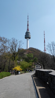 Ada kereta kabel untuk naik ke puncak Bukit Namasan ni..tapi den macam biasa memilih untuk mendaki bukit ni..lagipun cuaca sejuk, sedap mendaki sejuk2 ni..badan tak melekit sangat, lagipun tak adelah tinggi manepun Bukit Namsan ni dalam 260m ajer..mendaki la den sesorang n tak ramai rasanya memilih untuk mendaki..ramai yang naik kereta kabel..